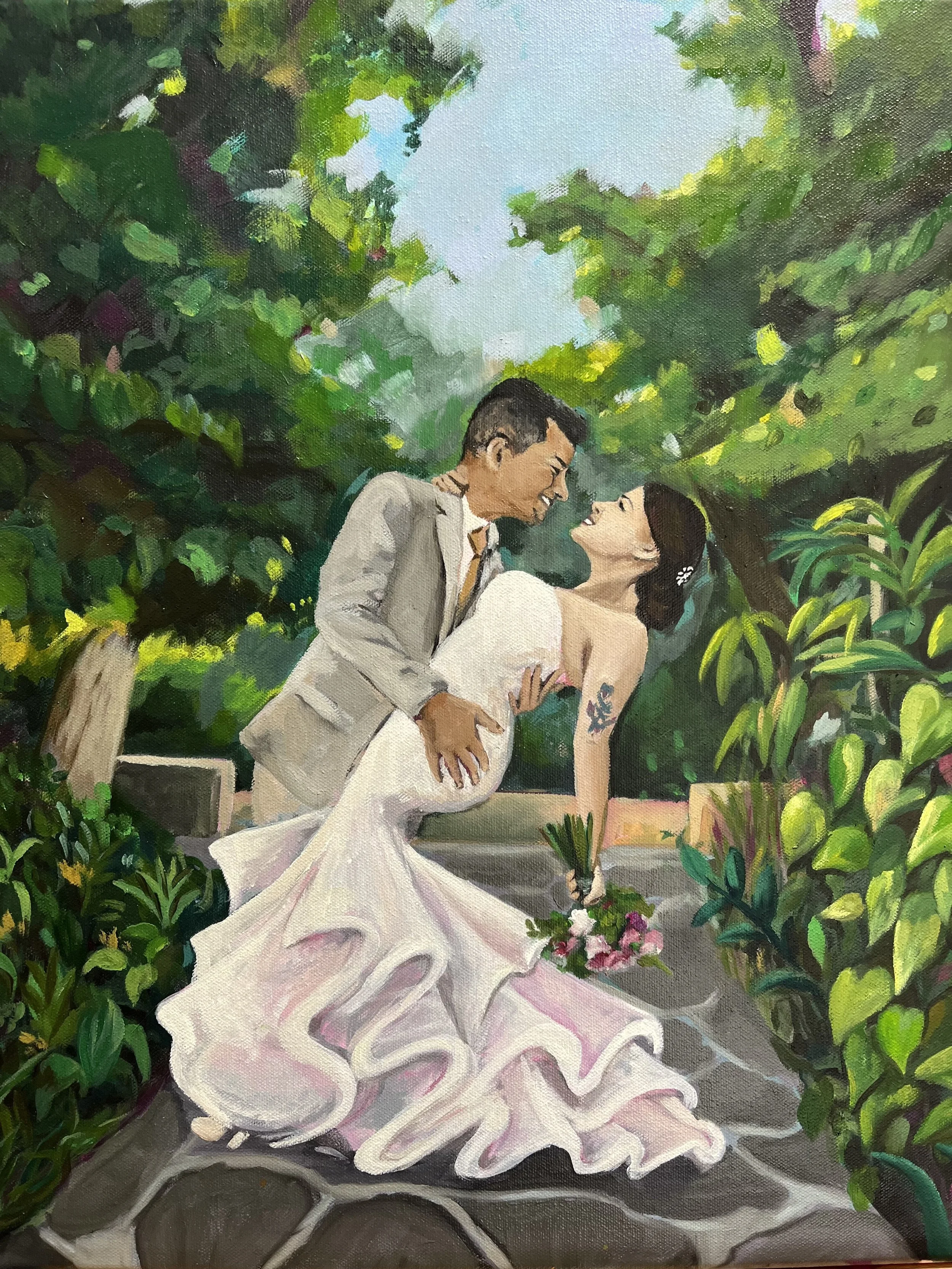 There are many different factors artists consider to determine their pricing. I personally think that I am still at an early stage of my artistic career as a college student. My current priorities are building a community around my work, gaining experiences outside University, and solidifying my artistic style before graduation. Therefore, I opted to price my live wedding paintings relatively close to my personal works.